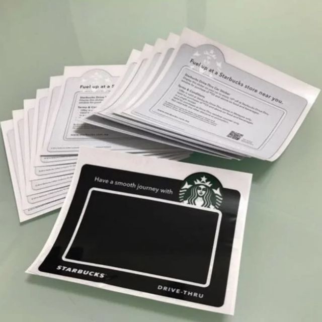 Your total bill is RM35 including Tax of RM210 - Starbucks Card A paid with RM10. Waterproofscratch proof and magnetic. 13cm x 13cmDrive Thru sticker is a special promotion for Starbucks in Malaysia10 percent discountabove.